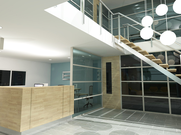 Verbouw van bedrijfspand met kantoren Oud Beijerland. Ontwerpen van duidelijke entree en centrale ontvangstruimte met trappenhuis. Op de begane grond met balie en wachtruimte. Op de verdieping vide met rondom glas naar de kantoren en kantine. In het dak een grote sparing voor maximale lichtinbreng.
