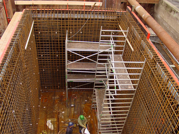 Vloer is aangebracht en put leeggepompt. Wapening voor de wanden wordt aangebracht.