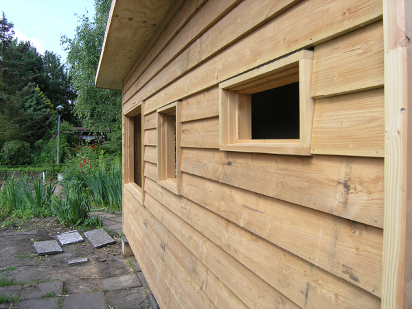 Tuinhuis met europees douglas potdekseldelen en epdm dakbedekking Voorzien van keuken en toilet Ontwerp en uitvoering Studio Hans Huitinck 2010 Uitvoering Allard Budding en Hans Huitinck